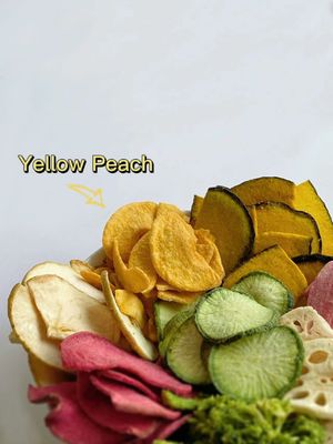 عمده فروشی میان وعده میوه های سرخ شده با خلاء برای کودکان و بزرگسالان چیپس هلو زرد ترد وگان 7