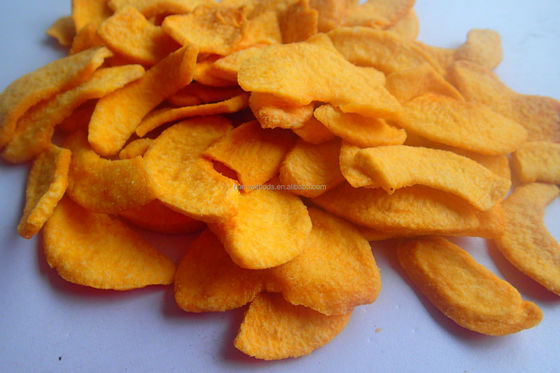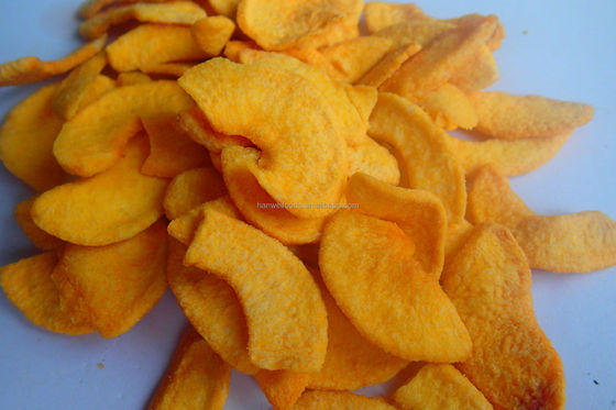عمده فروشی میان وعده میوه های سرخ شده با خلاء برای کودکان و بزرگسالان چیپس هلو زرد ترد وگان
