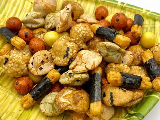 فهرست | برنج چسبناک، بادام زمینی، آرد، نشاسته، جلبک دریایی، کنجد، نمک، شکر و غیره. |