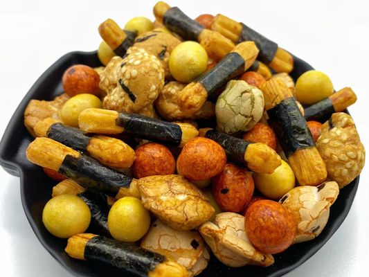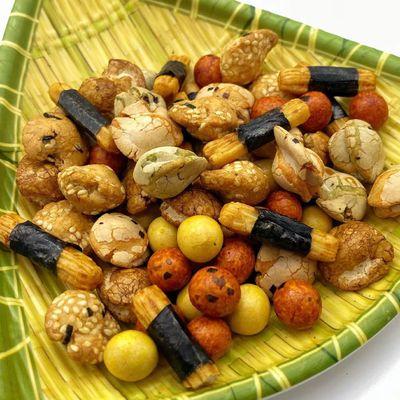 در رایحه طبیعی کراکر برنج، مخلوط با طعم لذیذ بادام زمینی و جلبک دریایی.