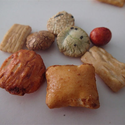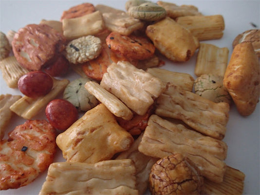 برنج چسبناک، بادام زمینی، آرد گندم، نشاسته تاپیوکا، نشاسته، مالت دکسترین، شکر، سس سویا، نمک، جلبک دریایی، E102، E133، E150c، E160c