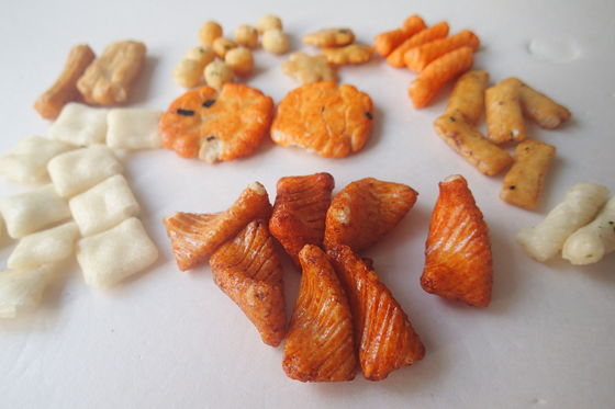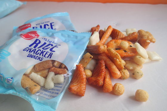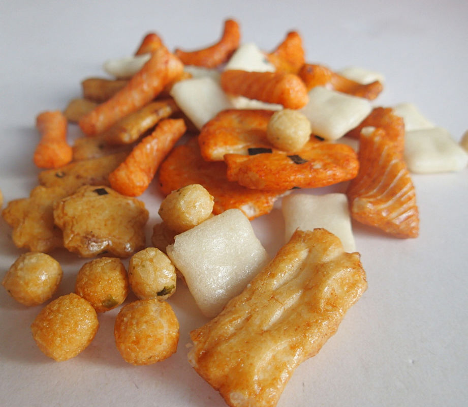 جزء | برنج چسبناک، بادام زمینی، آرد گندم، نشاسته تاپیوکا، نشاسته، مالت دکسترین، شکر، سس سویا، نمک، جلبک دریایی، E160c، E150C |