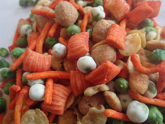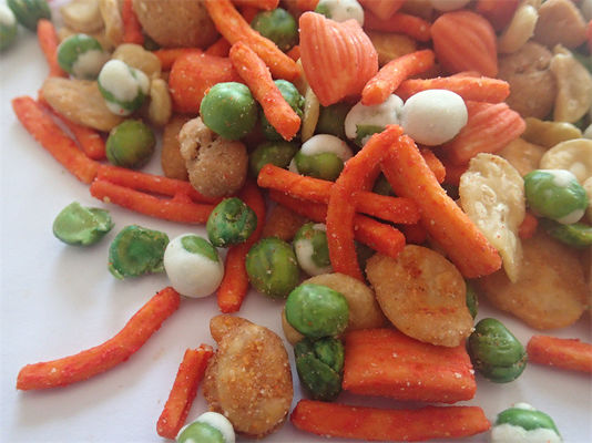 یک میان وعده ترکیبی از بادام زمینی با لوبیا سبز و لوبیا پهن مخلوط شده