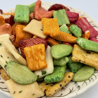 ماکریکر های مخلوط برنج رنگارنگاین کریکرها از برنج فوق العاده ساخته شده و تا شکل طلایی تکه تکه شده اند.رنگ های سبز، نارنجی، قرمز و طبیعیبافت خرد و ظاهر چشمگیر آنها را به یک انتخاب محبوب برای بسته های میان وعده های خرده فروشی، مخلوط های مهمانی و جایگزین های میان وعده های سالم تبدیل می کند.